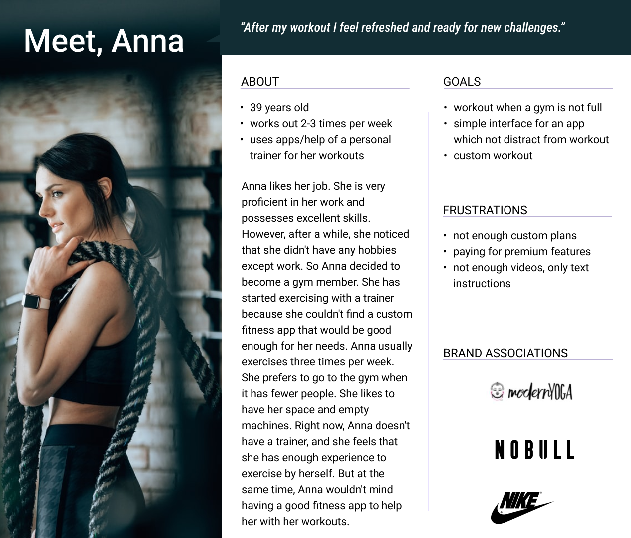 User Persona. After concluding the research, I created a Persona that would best reflect Anytime Fitness target audience