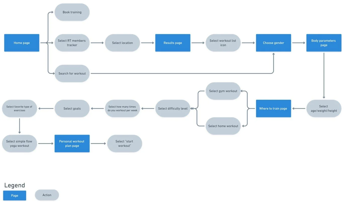 The usability test was conducted with four users 26 - 36 years old. Each participant was asked to complete the following task: find out how many people are in the gym, go through the app, and select a personalized workout plan.