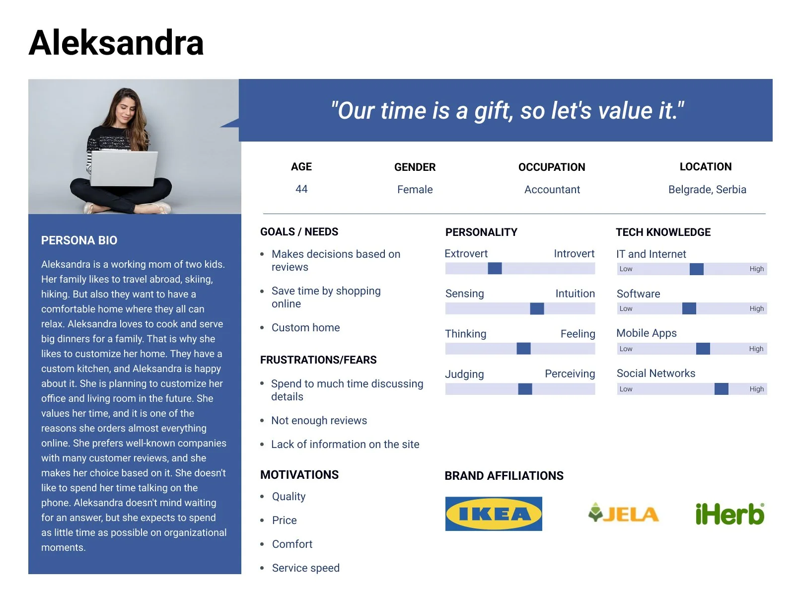 User Persona. After concluding the research, I created a Persona that would best reflect ID Concept’s target audience