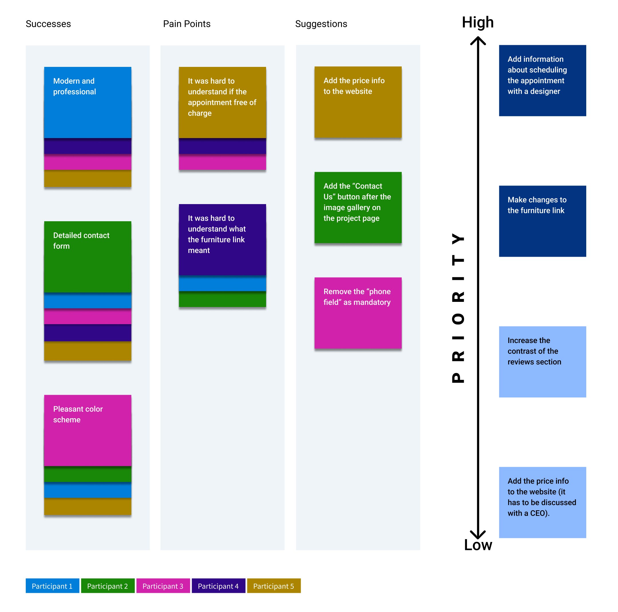 The test showed that there are two high-priority tasks to be resolved. Some of the users' suggestions could be implemented in the future based on business needs and priorities.