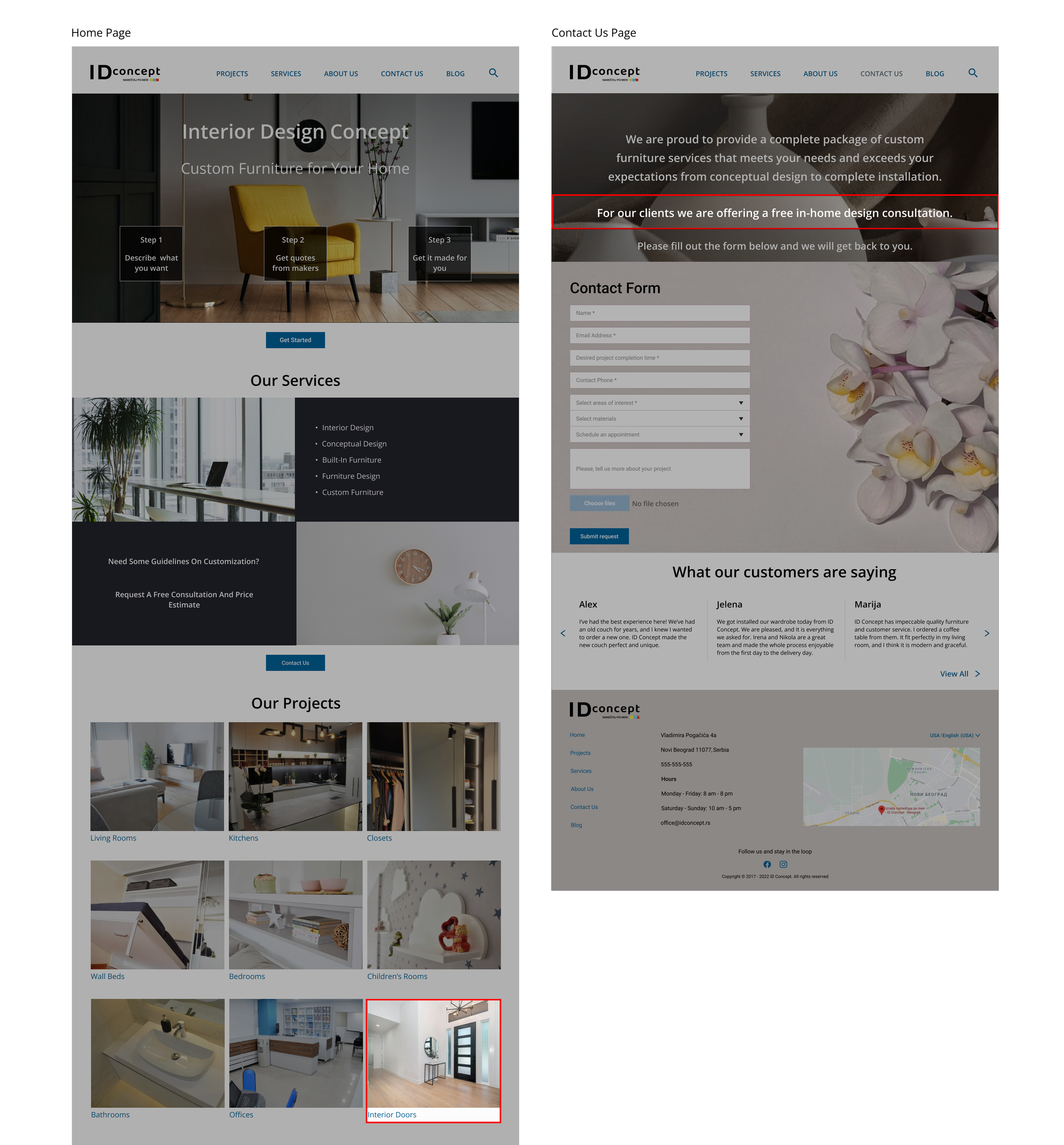 ID concept is a small company, but they have many orders for custom-made furniture. Their contact/quote form often leads to customers being confused. They also don't have an appointment system on the current website. That is why they always get too many time-consuming phone calls. Also, the company wants to have a site in English because they make furniture for many foreigners.