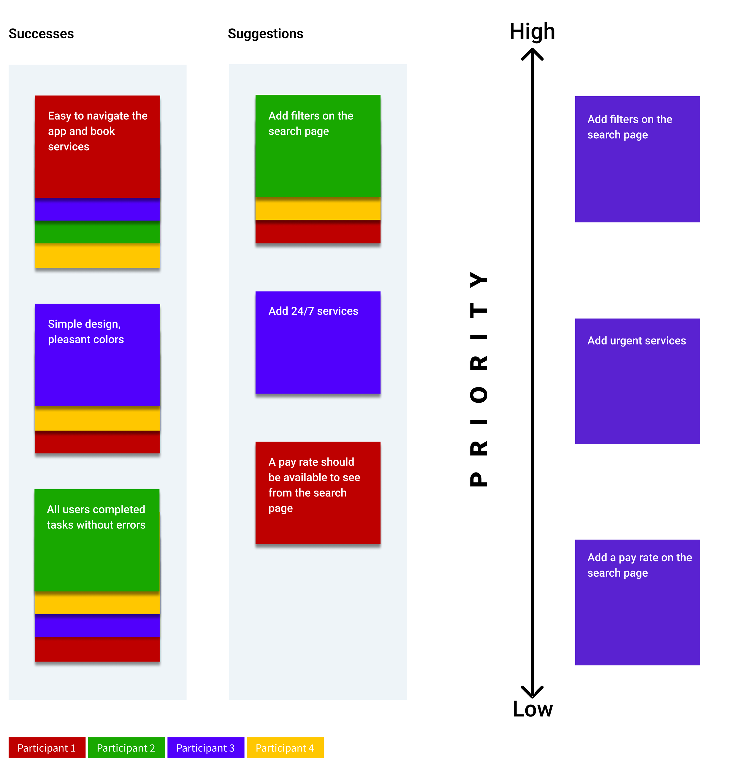 The test showed that there are three high-priority tasks to be resolved. Some of the users' suggestions could be implemented in the future based on business needs and priorities
